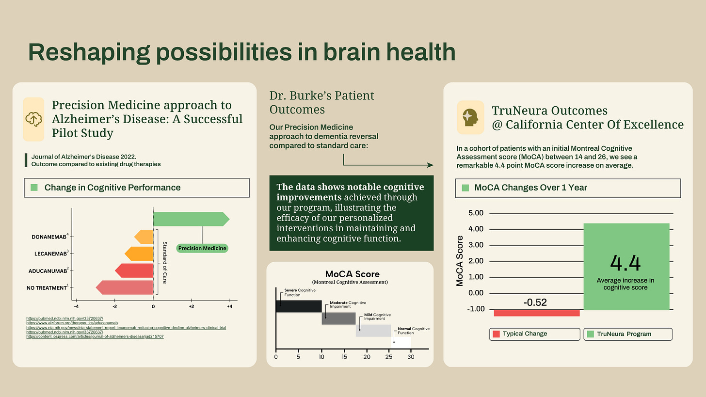These are practitioners who aren’t necessarily household names like Dr. Mark Hyman or Dr. Mehmet Oz. Yet if you or someone you love has early Alzheimer’s or mild cognitive impairment, you might be far better off seeing a doctor like Dr. Burke—someone who has real data behind her success with reversing or stabilizing dementia.